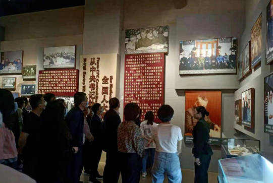 在莊嚴的紀念館序廳革命先輩浮雕前,全體黨員干部面對鮮紅的黨旗重溫了入黨誓詞。
